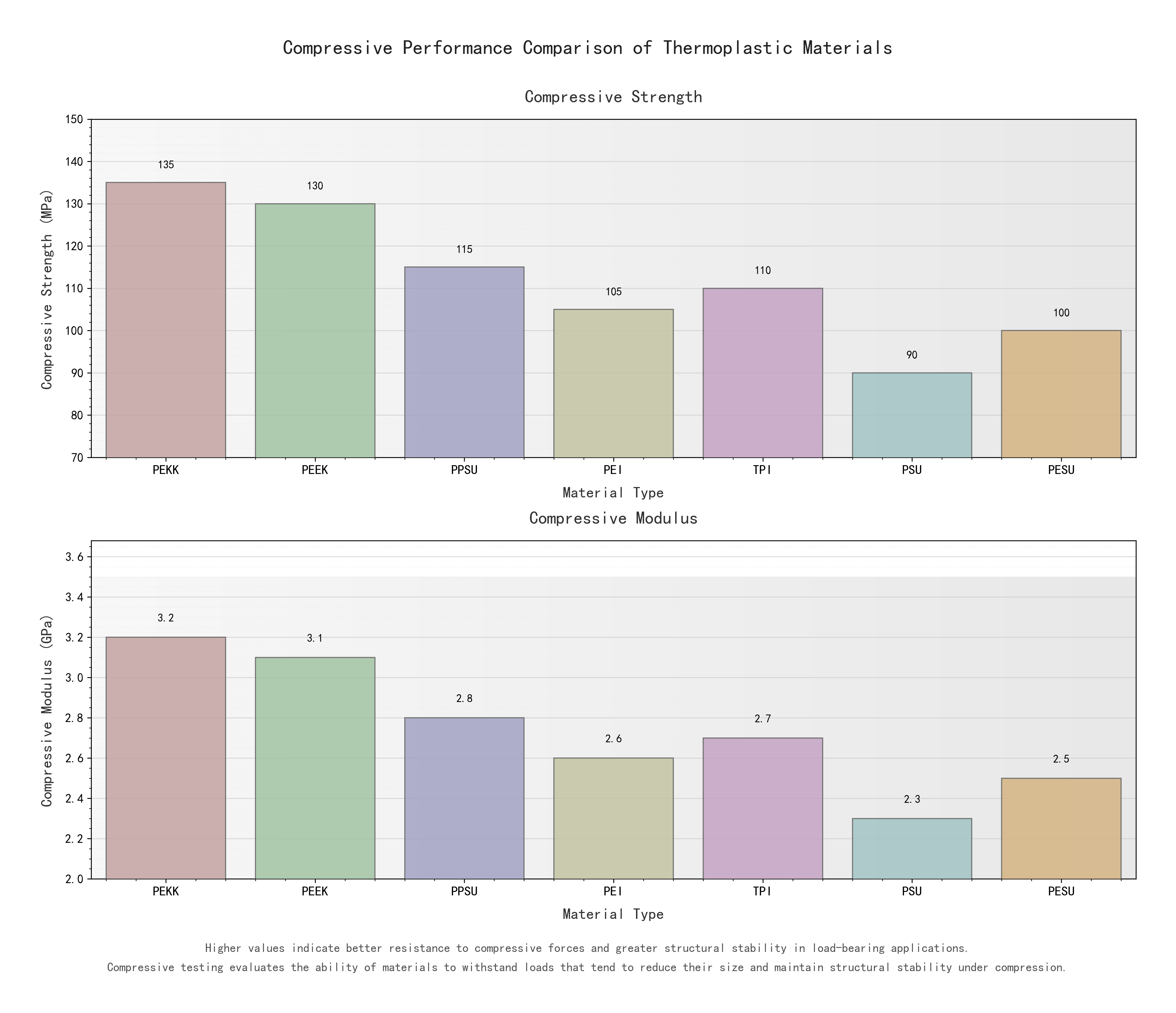 Compressive strength is critical for components under continuous pressure, such as aerospace structural brackets or hydraulic seals. PEEK leads with a compressive strength of 120–140 MPa, followed closely by PEKK (110–130 MPa). Both materials maintain their strength even at 150°C, confirming their suitability for high-temperature compressive applications like jet engine sensor housings.